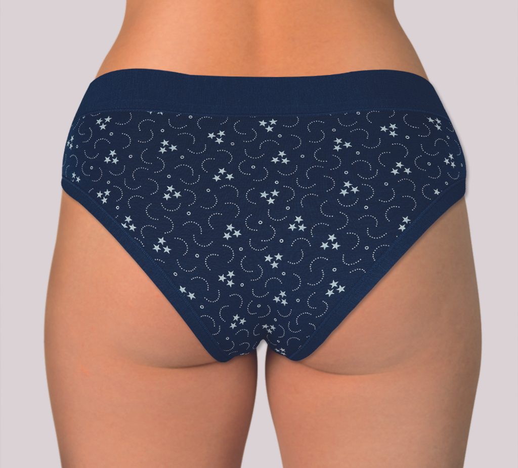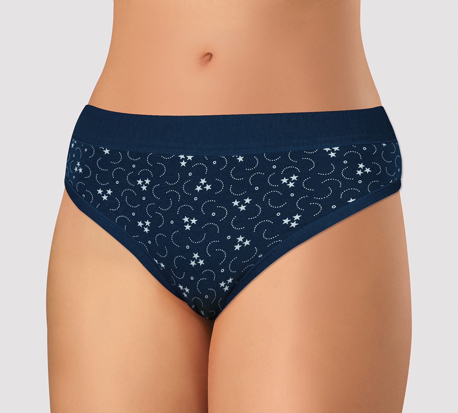 Dámské kalhotky sníženého střihu. Kalhotky jsou vyrobeny z velmi kvalitní elastické směsi přírodního vlákna Modal a bavlny s příměsí elastanu pro větší pružnost materiálu. Materiál se skvěle přizpůsobí postavě a drží stálý tvar prádla. Díky širokému lemu v pase ideálně přiléhají k tělu a jsou velmi pohodlné. Komfortní lem okolo nohou zaručuje, že se kalhotky nezařezávají do stehen. Bavlněný klínek.