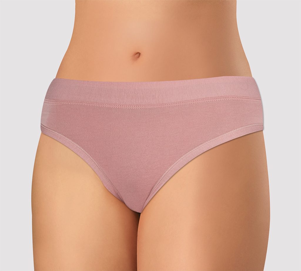 Dámské kalhotky klasického střihu. Kalhotky jsou vyrobeny z elastické směsi bavlny a bambusu, který dodává tkanině jemný a velmi příjemný pocit při nošení. Materiál obsahující bambus je vhodný pro osoby s citlivou pokožkou. Díky širokému lemu v pase ideálně přiléhají k tělu a jsou velmi pohodlné. Komfortní lem okolo nohou zaručuje, že se kalhotky nezařezávají do stehen. Bavlněný klínek.