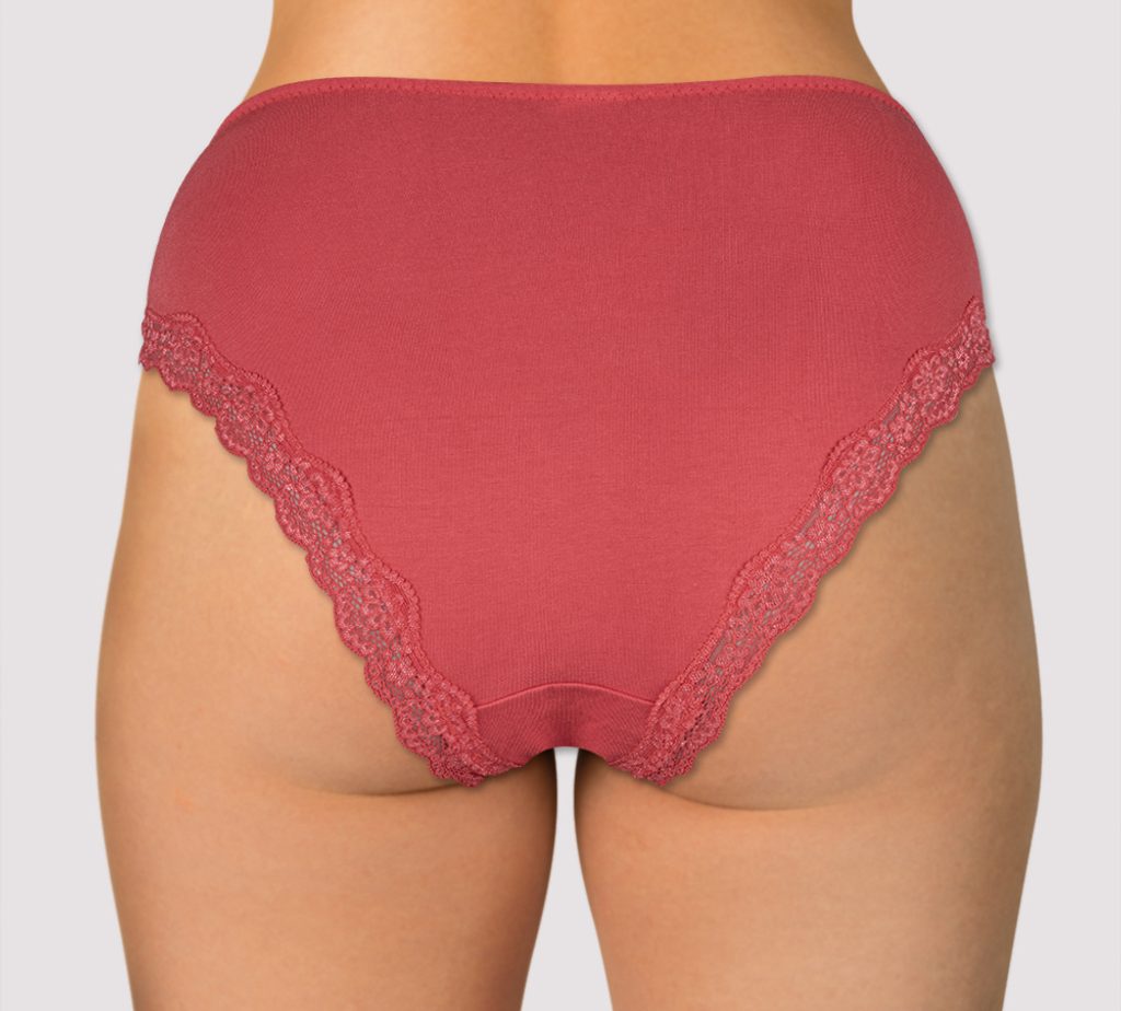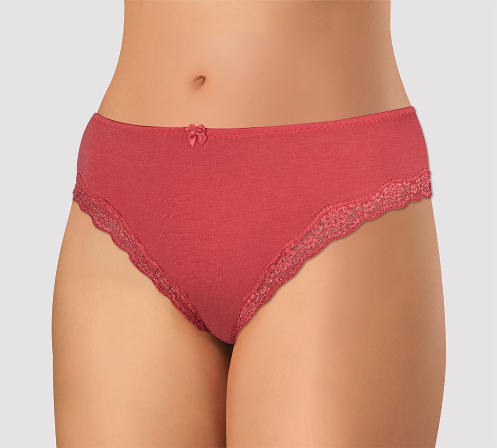 Dámské kalhotky klasického střihu. Kalhotky jsou vyrobeny z velmi kvalitní elastické bavlny s příměsí vlákna Tactel, které dodává materiálu hebkost a prodyšnost. Materiál se skvěle přizpůsobí postavě a drží stálý tvar prádla. V pase je našitá elastická pruženka. Kolem nohou je příjemná elastická krajka. Bavlněný klínek.