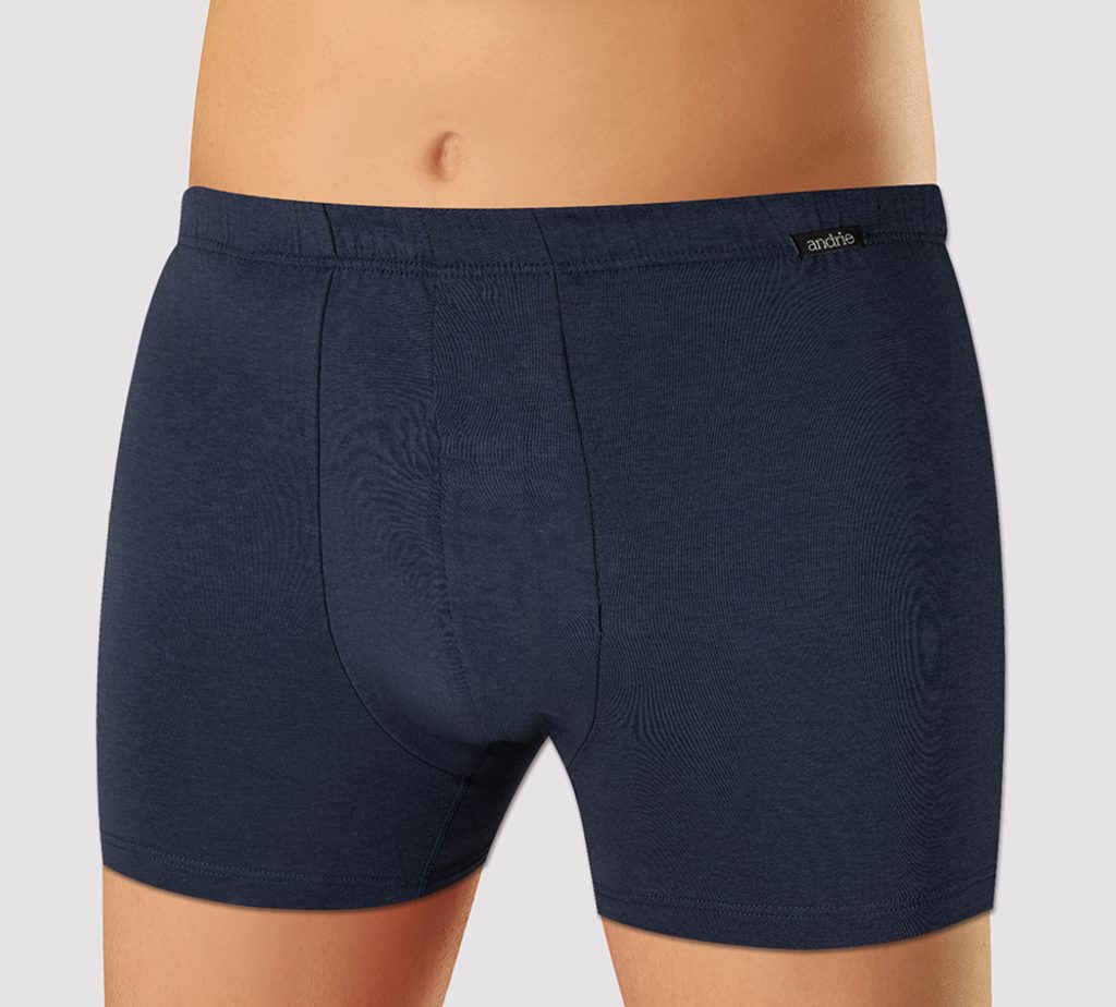 Pánské jednobarevné boxerky s prošívanou zakrytou elastickou gumou v pase jsou vyrobeny z elastické směsi bavlny a přírodního vlákna Modal. Tkanina je krásně měkká a jemná, což přispívá k vysokému komfortu a pohodlí při nošení. Zadní díl boxerek je pro vyšší komfort bez švů.