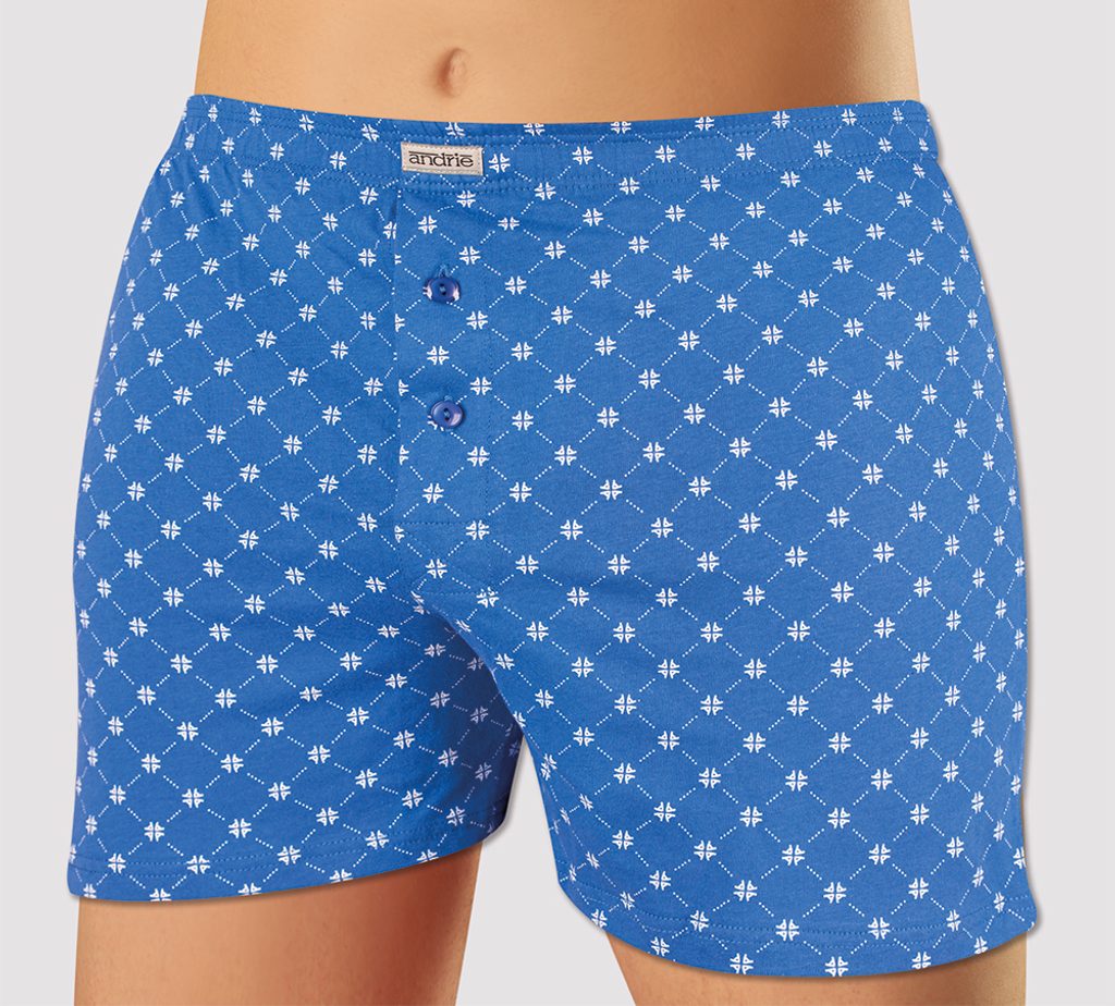 Pánské trenýrky Andrie se zakrytou měkkou gumou v pase jsou vyrobeny z kvalitní bavlny. Na nohavicích jsou malé rozparky pro větší komfort a pohodlí. Poklopec s rozepínáním na dva knoflíčky.