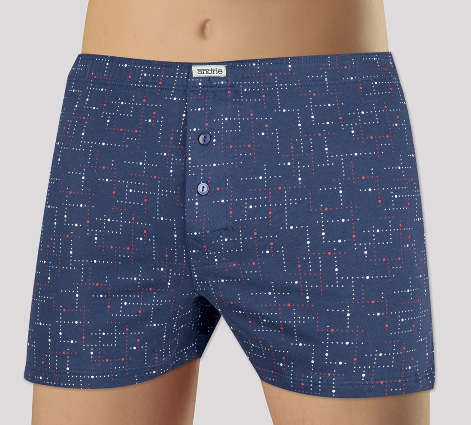 Pánské trenýrky Andrie s podšitou měkkou gumou v pase jsou vyrobeny z kvalitní bavlny . Na nohavicích jsou malé rozparky pro větší komfort a pohodlí. Poklopec s rozepínáním na dva knoflíčky.